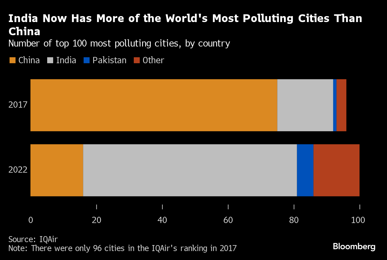 Previously, it was China that dominated the list: In 2017, about three-quarters of IQAir's tally of the world's most polluted cities were in China, while 17 were in India.