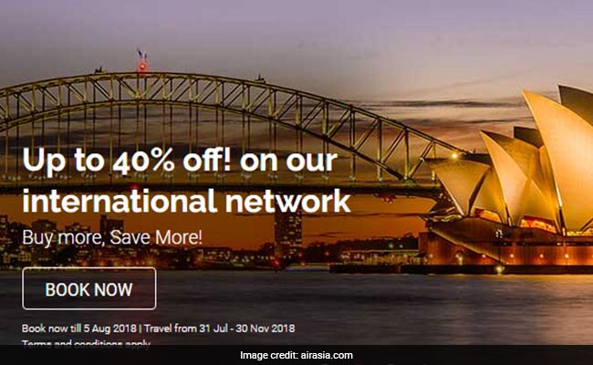 AirAsia has come up with a new discount offer on international flight tickets. Under the scheme, 'Buy More, Save More', AirAsia is offering up to 40 per cent off on international flight tickets, said the carrier on its official webiste -- airasia.com. To avail AirAsia's discount offer, customers need to book flight tickets till August 5, 2018, the website further stated. The travel period of the offer on AirAsia flight tickets starts from July 31 and ends on November 30, 2018.