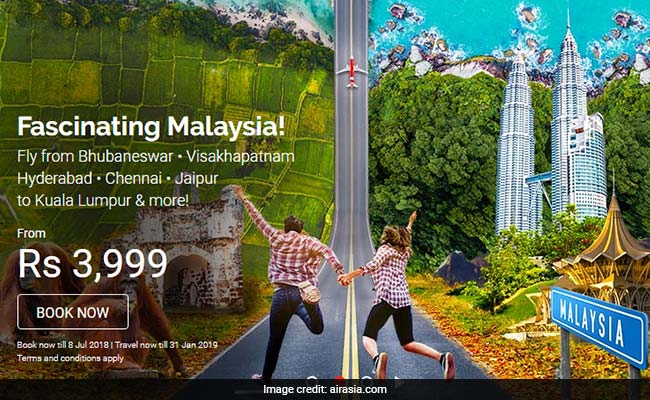 AirAsia is offering overseas flight tickets at a starting all-inclusive price of Rs. 3,999 on select routes under a new promotional sale. AirAsia's 'Fascinating Malaysia' offer is valid on travel till January 31, 2019 and bookings are open till July 8, 2018, according to the airline's website-airasia.com. Under this offer, the carrier is offering discounted tickets on flights flying from Bhubaneshwar, Visakhapatnam, Hyderabad, Chennai and Jaipur to Kuala Lumpur, among others. Meanwhile, AirAsia India is offering domestic flight tickets at a starting all-inclusive price of Rs.1,299.