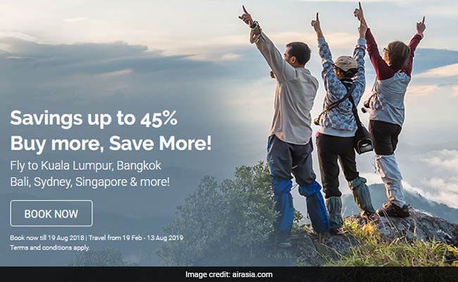 AirAsia is offering up to 45 per cent discount on international flight tickets under it's special 'Buy More, Save More' promotional sale scheme, said the carrier on it's official website- airasia.com. AirAsia's all-new discount offer on international flight tickets is available till August 19, 2018 only. The travel period of the offer starts from February 19, 2019 and ends on August 13, 2019. The airline is offering discount on flights flying to Kuala Lumpur, Bangkok, Bali, Sydney, Singapore, among others. The offer is available on both AirAsia's website and it's mobile app.