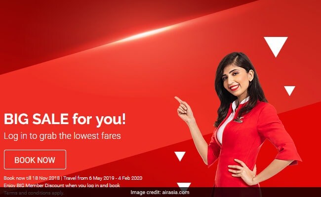 AirAsia India is offering "lowest fares" on flight tickets in its latest sale, the airline said on Monday. "Big sale for you. Log in to grab the lowest fares," the airline said on its website airasia.com. AirAsia's offer on flight tickets is valid till November 18, 2018. The travel period to avail AirAsia's offer is May 6, 2019 - February 4, 2020. Customers can also avail 'Big Member' discount when they log in online, said AirAsia. However, AirAsia's Big Sale is subject to terms and conditions.