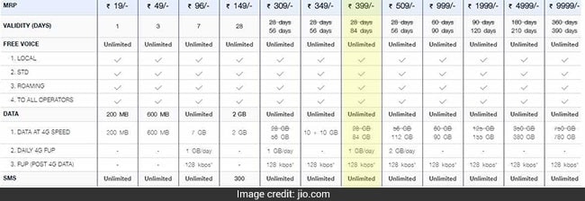 Airtel vs Jio:  349 PlanAirtel vs Jio:  399 Plan