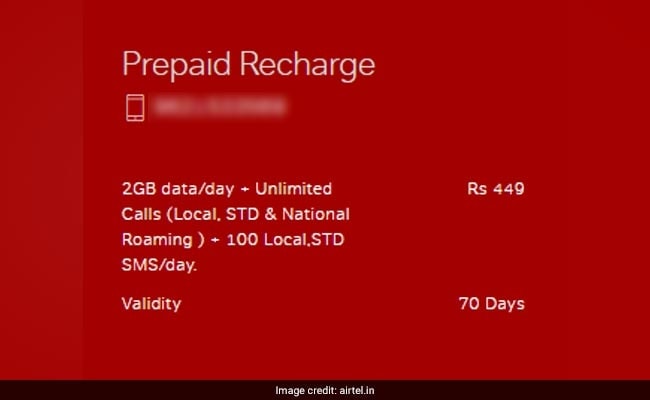 (Airtel's Rs 449 prepaid pack is valid for 70 days.)