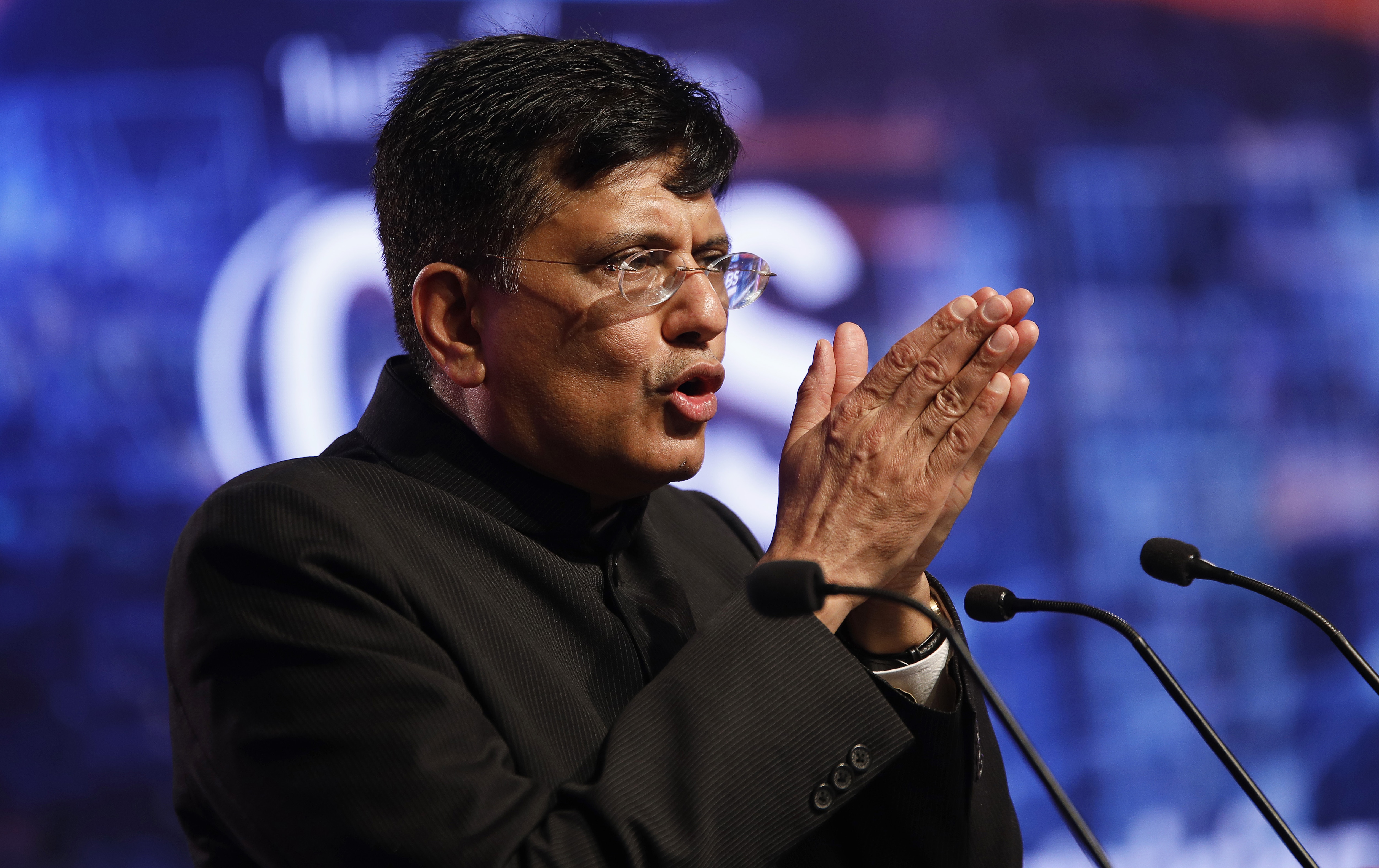 Piyush Goyal, India’s railways and coal minister at a business summit. (Photographer: Anindito Mukherjee/Bloomberg)