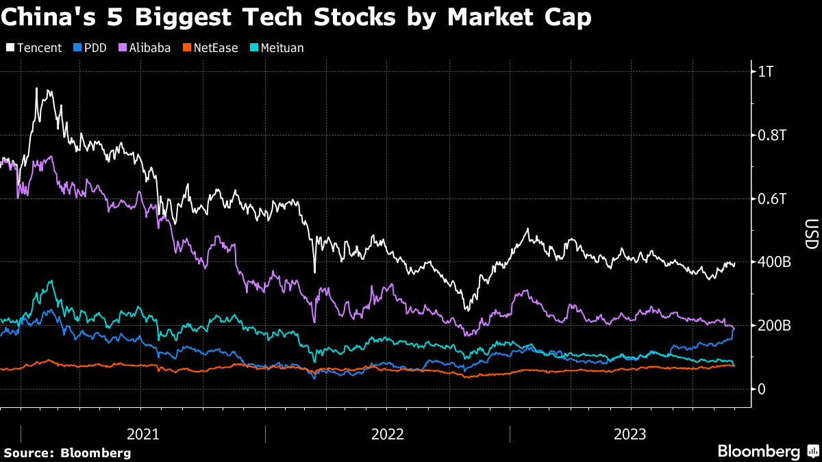 Alibaba slid as much as 1.4% in Hong Kong, putting its market value at about HK$1.46 trillion ($187 billion) and on track to close below US-listed PDD Holdings Inc.'s $188.3 billion, according to Bloomberg calculations. PDD, the company best known for hit US shopping app Temu and domestic bargains trailblazer Pinduoduo, closed nearly 2% higher in New York on Wednesday.