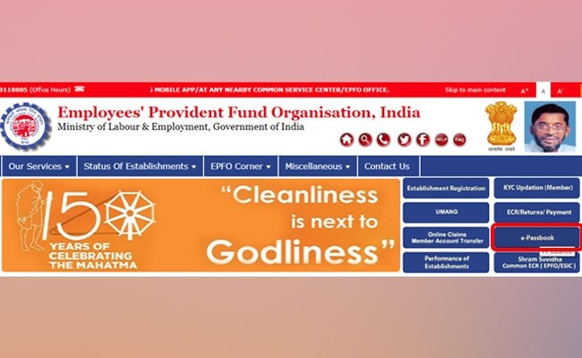 Step 1: Subscribers to Employee Provident Fund Organisation will have to log in to EPFO website - epfindia.gov.in and click on e-Passbook link on the top right side of the webpage.