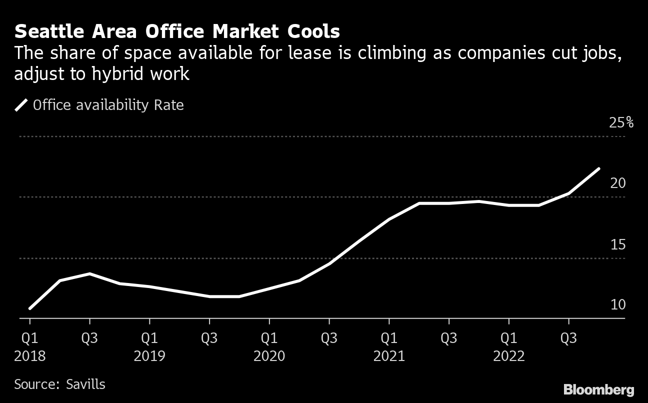 (Bloomberg) -- Job cuts at Amazon.com Inc. and Microsoft Corp. are the latest blow for the Seattle region, which is still struggling to recover from a pandemic-era decimation of the commuter economy that, as in many cities, is the lifeblood of America's second-largest tech hub.