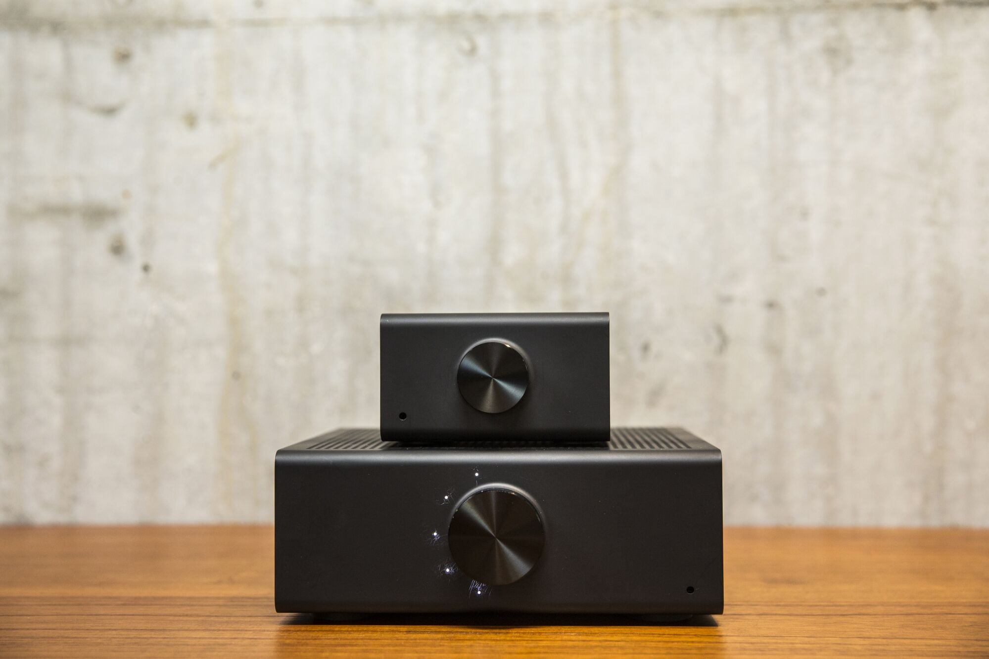 An Amazon Echo Link music streaming device, top, and Link Amp music streaming device and amplifier sit on display at the Amazon.com Inc. Spheres headquarters during an unveiling event in Seattle, Washington, U.S., on Thursday, Sept. 20, 2018. Amazon.com Inc. unveiled its vision for smart homes powered by the Alexa voice assistant, with a dizzying array of new gadgets and features for almost every room in the house -- from a microwave oven to a security camera and wall clock.
