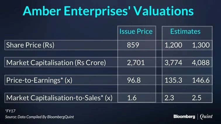 Amber Enterprises' net worth, as of Sept. 30 last year, was close to Rs 363 crore, translating into book value of Rs 115 a share after fresh issuance.
