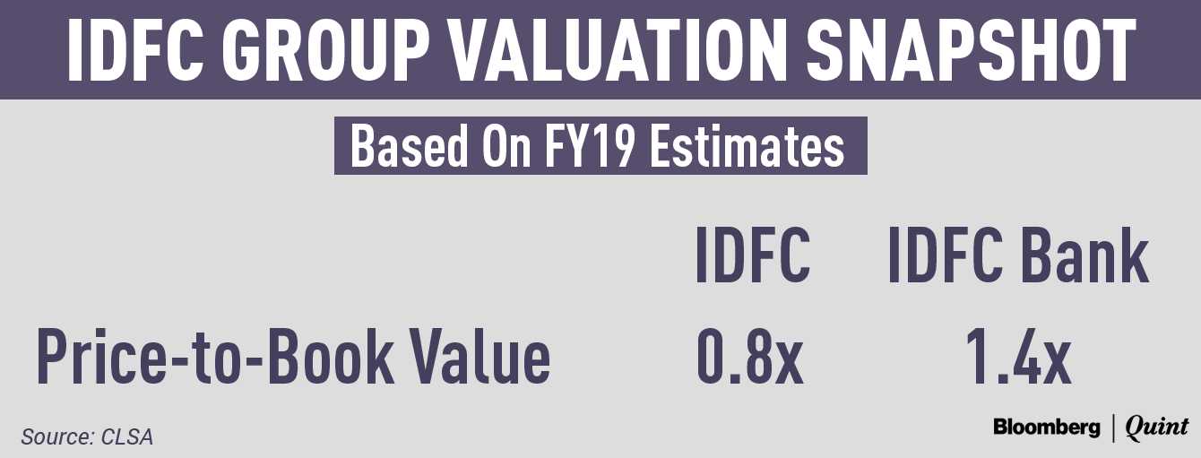 A banker, who spoke to BloombergQuint on the condition of anonymity, said that IDFC Bank shareholders may get a premium to the existing price due to the banking licence it holds. Also since IDFC Bank trades at a discount to other private sector banks, there may be room for upside in its valuation.