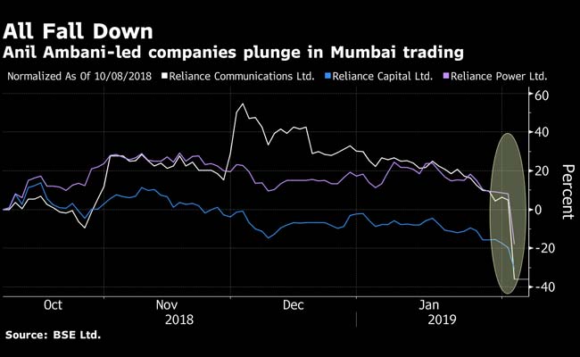 RCom's equity holders are already shorn. The company's shares plunged by a record Monday, losing more than a third of their value, before closing at 7.6 rupees, their lowest since listing in 2006. The stock had plummeted 60 percent in 2018 as India's former No. 2 wireless carrier battled creditors in court and proposed one asset sale after another that fell through.