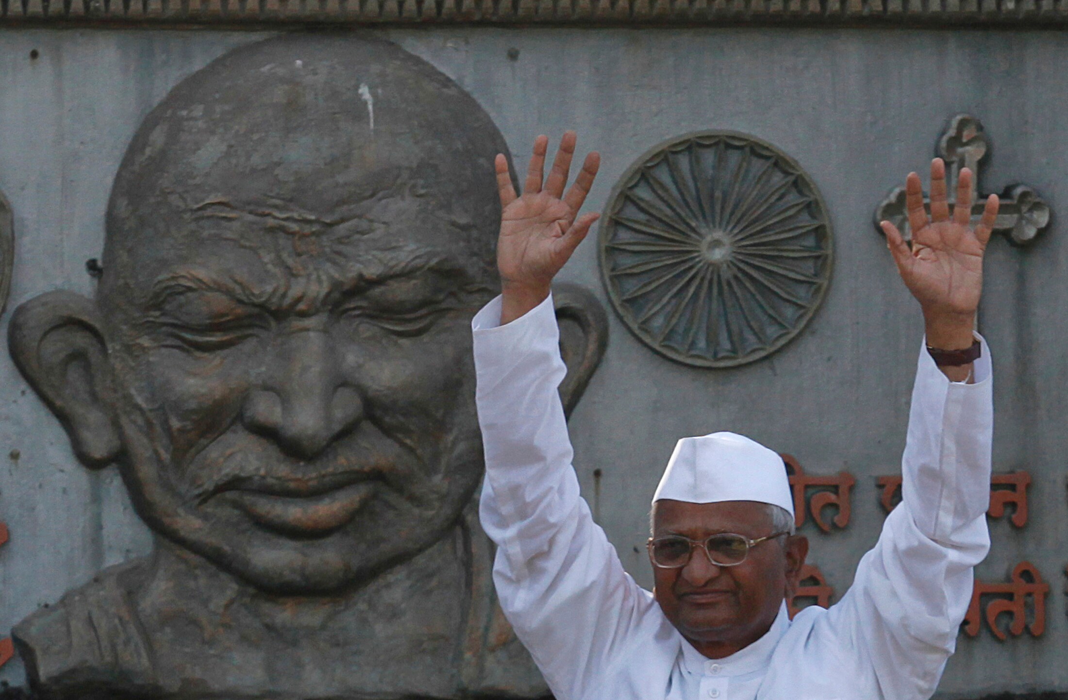 Anna Hazare has borrowed quite a bit from Gandhi. The ideal of the village, a suspicion of modern life and institutions. He also uses many of Gandhi's techniques, most often the hunger strike to rally public opinion and put pressure on the government.