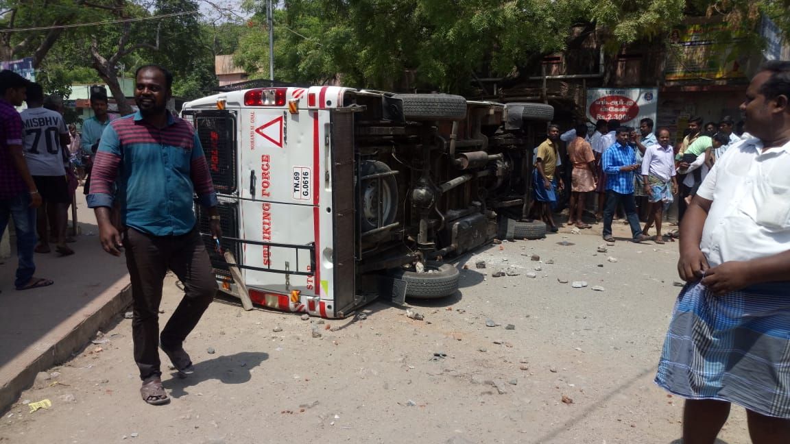 Protesters turned over vehicles and pelted stones on police personnel in Thoothukudi, Tamil Nadu.