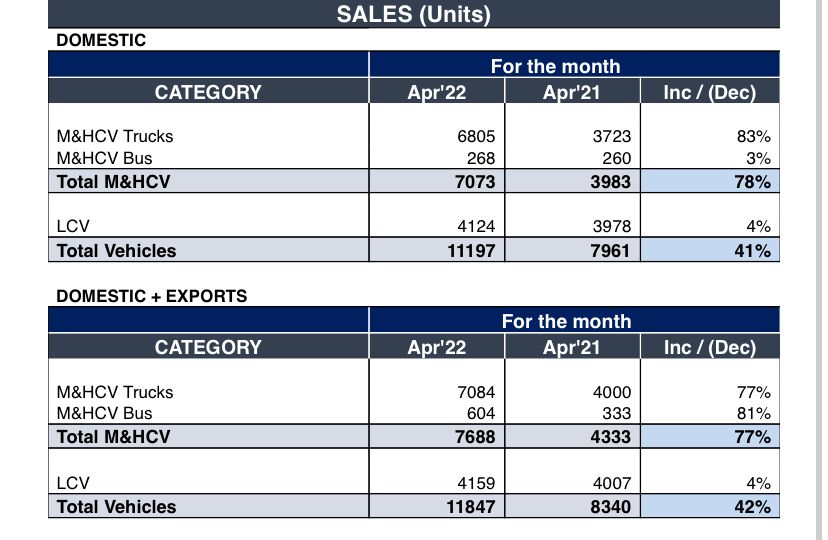 Mahindra and Mahindra Ltd.'s auto segment posted an overall sales of 45,640 units in April, registering a growth of 25% over the same period last year even as the company continue to closely monitor the chip shortage related parts crunch.