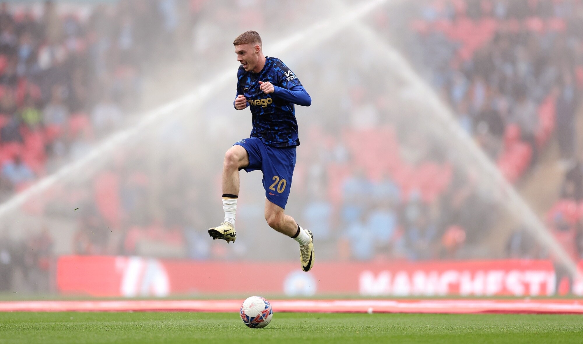 Cole Palmer of Chelsea warming up before the FA Cup Semi Final match with Manchester City.
