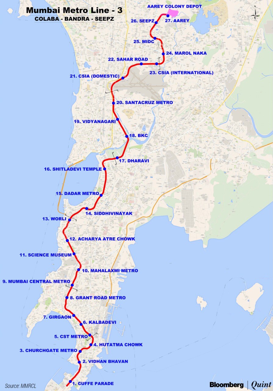 A team of consultants is studying five stations: Vidyanagri, Marol, MIDC (Maharashtra Industrial Development Corp.), Seepz and JVLR (Jogeshwari-Vikhroli Link Road), R Ramana, executive director (planning), MMRCL, told BloombergQuint. These stations, he said, are part of phase-1 of the Line 3 which will be operational by December 2021.
