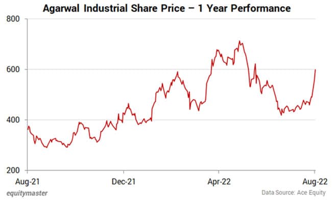 Such a big activity often sends microcap stocks soaring. This is exactly what happened yesterday. Agarwal Industrial ended 13% higher yesterday. It continued its rally and soared 7% today.