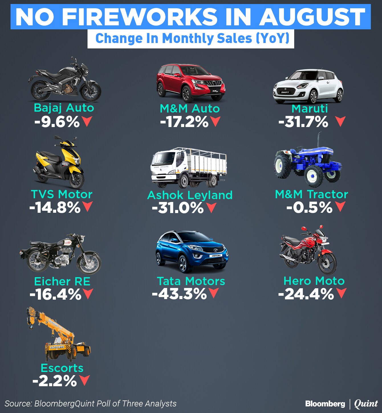 Sales in the commercial vehicles segment were down 45 percent at 21,824 units last month as against 39,859 units in Aug. 2018.