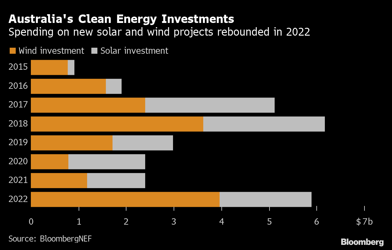 Utilities are rushing to shutter aging coal operations as they face increased competition from cheaper solar and wind generation and pressure from shareholders to speed up their transition. Investment in large-scale renewable energy projects jumped 145% in 2022 to about $5.9 billion, with around 5 gigawatts of solar and wind installed, according to BloombergNEF.