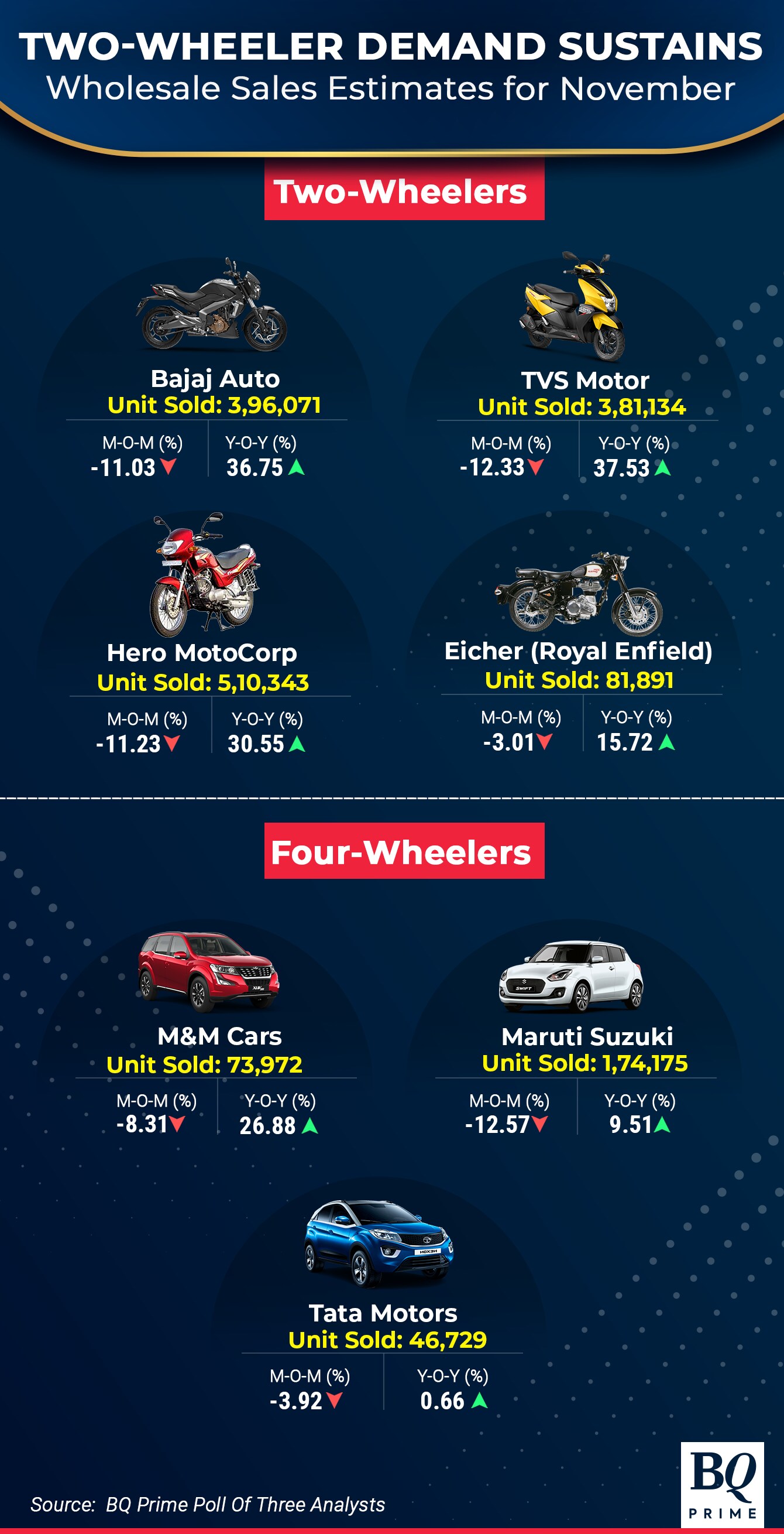 "While growth tends to slow down post-festival season, 2W (two-wheeler) demand is still better as we expect 5–7% YoY growth in the second half of the month," Motilal Oswal said in a note on Wednesday.