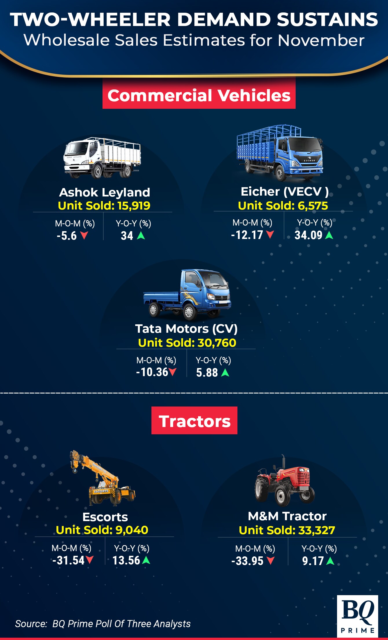 Despite an estimated fall in retail sales, the tractor dispatches to dealerships may see growth in November, according to the compiled estimates.