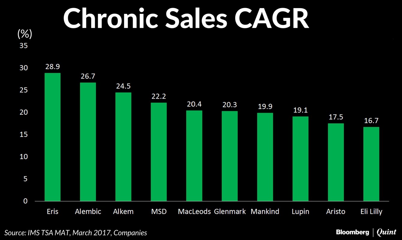 The broking firm expects the drugmaker to report a revenue growth rate of 20 percent CAGR over financial years 2017 to 2019. It said this would be led by high growth in chronic segments and acquisitions.
