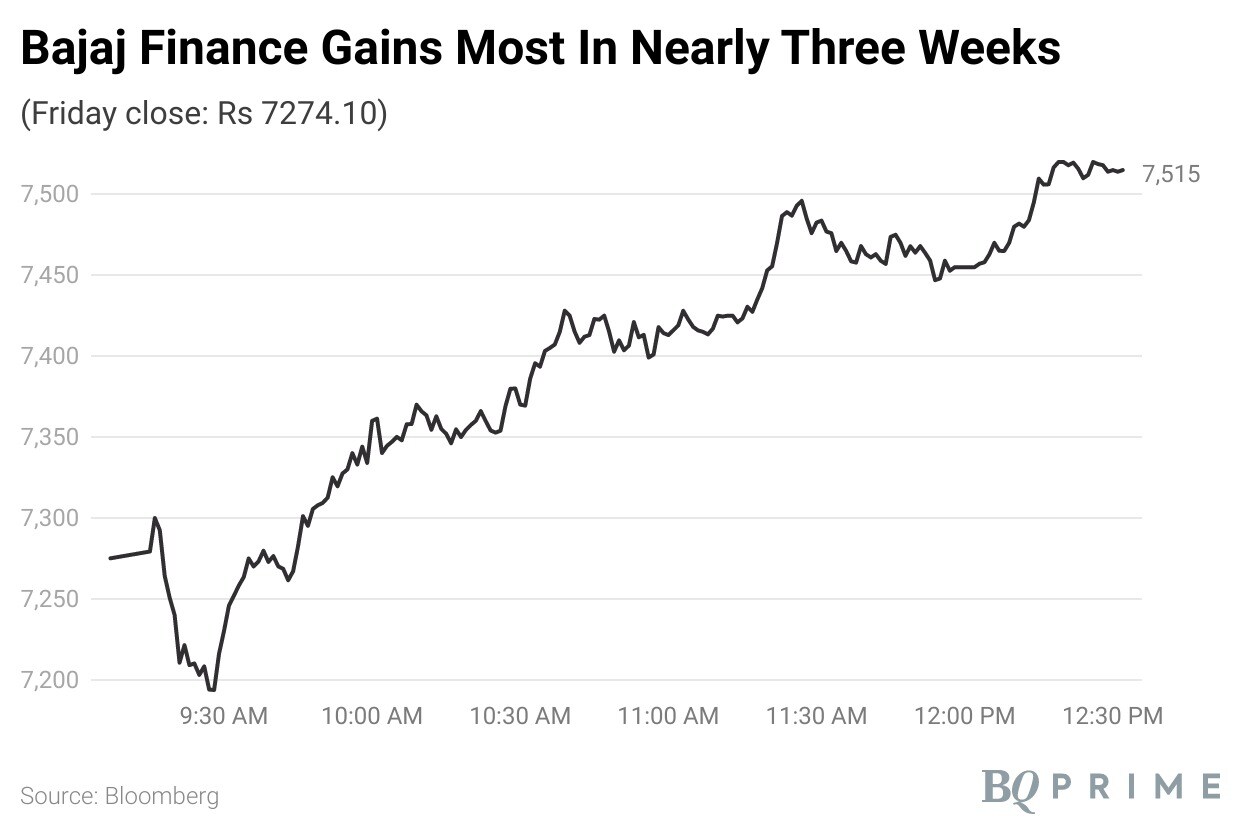 Shares of Bajaj Finance Ltd. rose the most in nearly three weeks as Jefferies expects higher growth realisation if the Reserve Bank of India approves in-house card programme, making it the first non-banking financial company to launch a credit card in India.