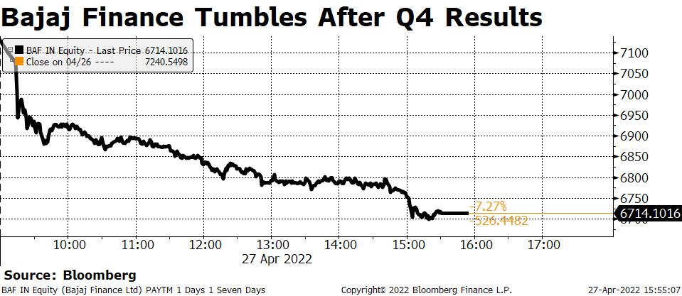 Shares of Bajaj Finance fell as much as 7.6% intraday on Wednesday, the worst since July 19 last year. Of the 31 analysts tracking the company, 20 recommend a ‘buy', six suggest a ‘hold' and five have a ‘sell' call, according to Bloomberg data. The average of 12-month price targets implies a 15.9% upside.