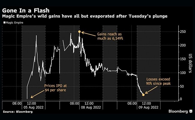 Magic Empire Global Ltd., which provides underwriting and advisory services and has helped just one company go public in two years, soared as much as 6,149% since debuting in the US on Friday, giving it a market value of $5 billion at one point.