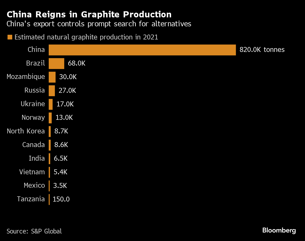 China's Ministry of Commerce said last Friday that it will place some types of graphite under export controls in order to safeguard national security. While the measures don't necessarily mean shipments will be banned, the announcement unnerved EV makers given the country accounts for about 60% of world's natural graphite production capacity, and 90% for the synthetic variety.