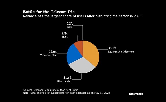Wireless operators Bharti Airtel Ltd., led by billionaire Sunil Mittal, and Vodafone Idea Ltd. -- a joint venture between Vodafone Group Plc and Kumar Mangalam Birla's group -- are the other bidders.