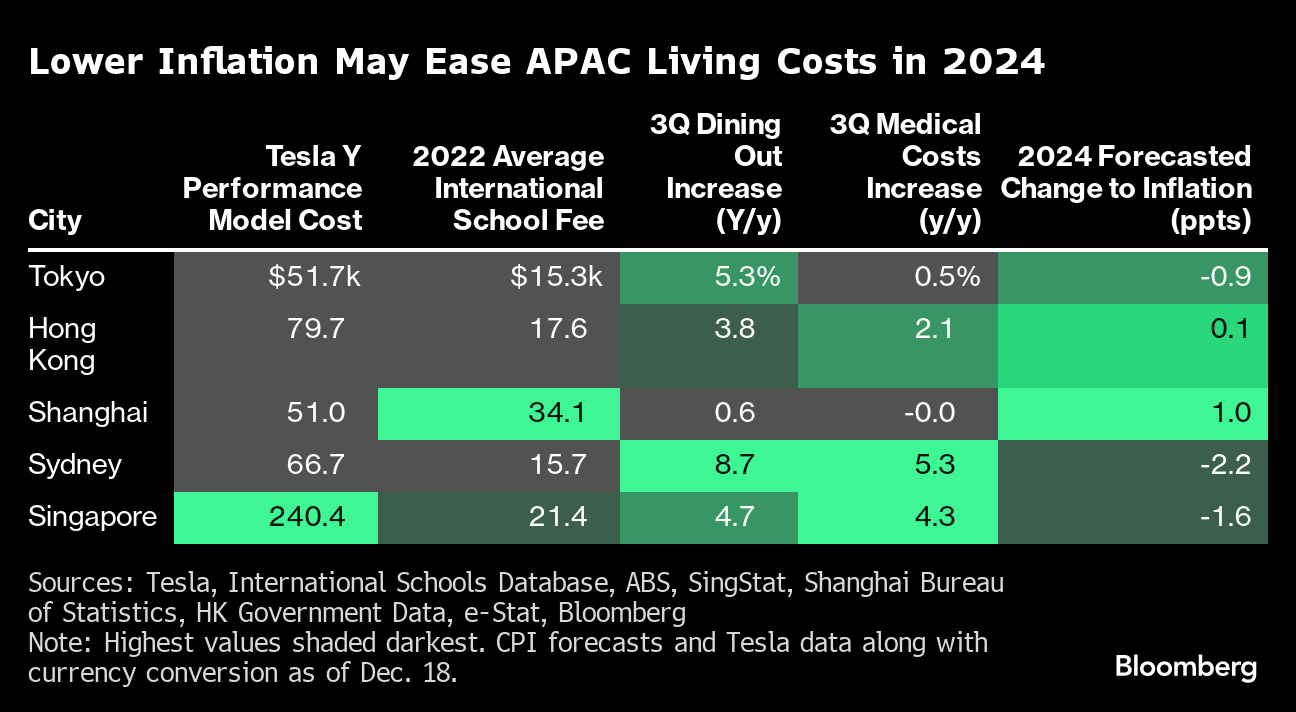 (Bloomberg) -- Considering relocating in the new year? Here's how five of Asia Pacific's biggest financial hubs stack up when it comes to cost of living.
