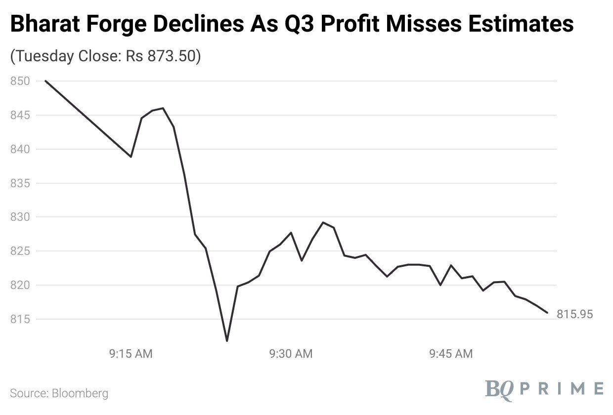 Shares of Bharat Forge Ltd. declined the most in at least a year after its third-quarter profit fell sharply and missed analysts' estimates.