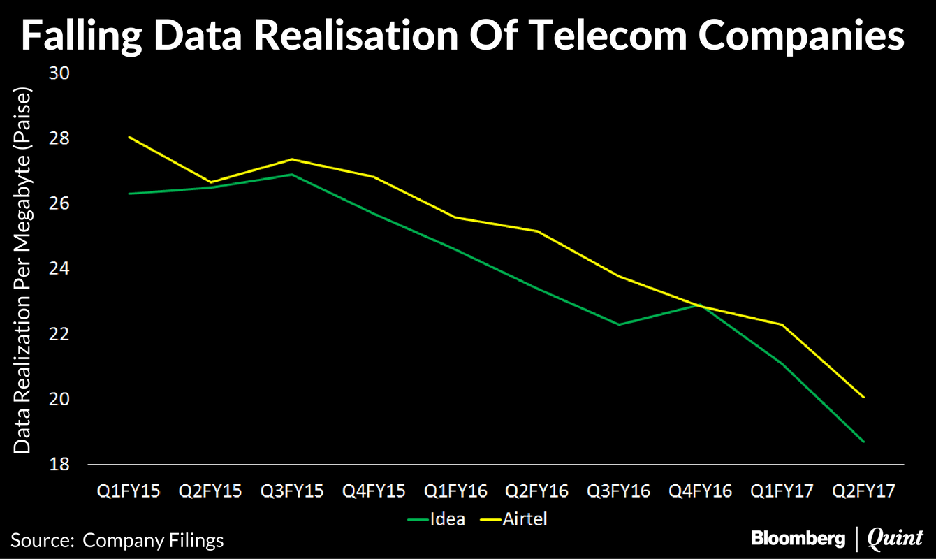 Like Idea Cellular, Bharti reported a drop in average realisation in its voice as well data businesses. Data realisation per megabyte decreased 10 percent to 20.08 paise while voice realisation per minute fell 3 percent to 32.42 paise on quarter-on-quarter basis.