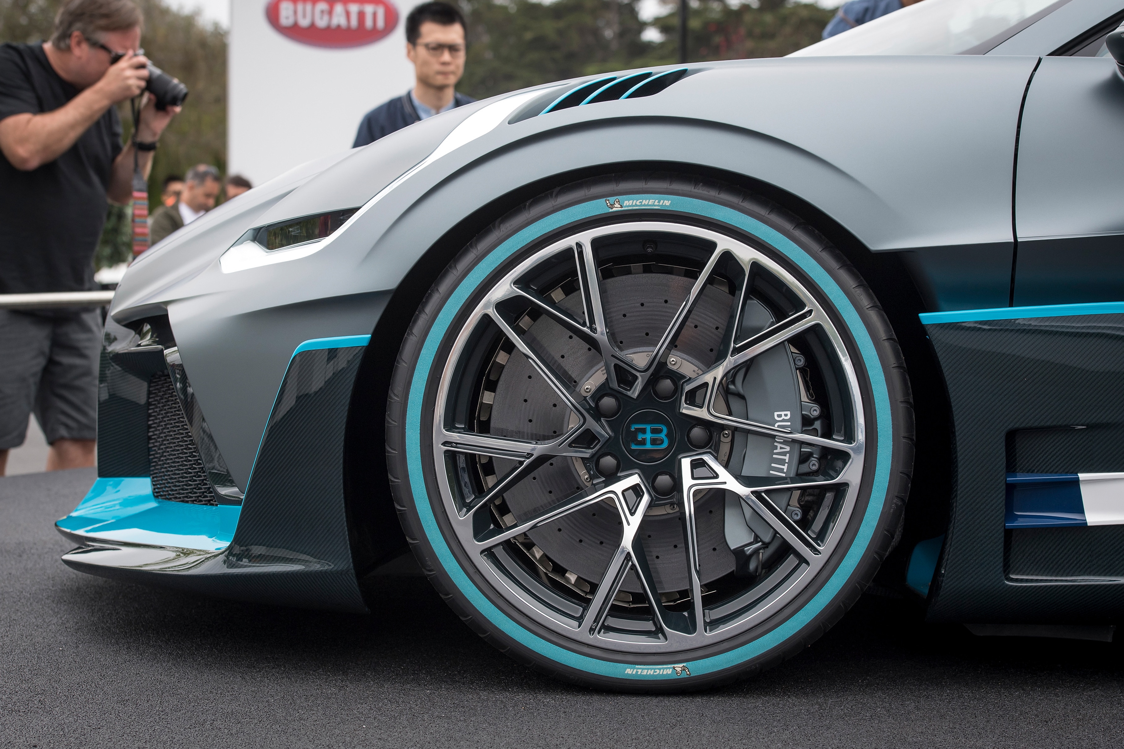 A Bugatti Automobiles SAS Divo vehicle sits on displayed at the 2018 Pebble Beach Concours d’Elegance in Pebble Beach, California, U.S. (Photographer: David Paul Morris/Bloomberg)