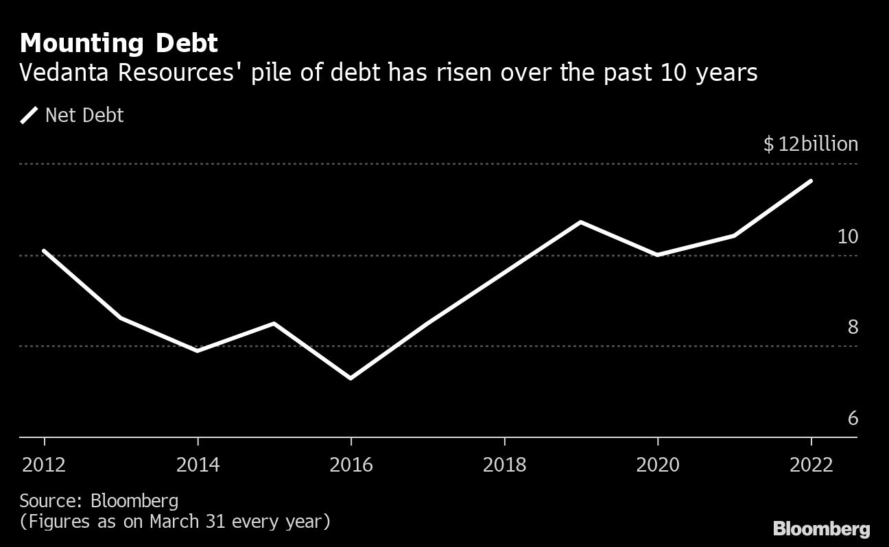 Dividends from the unit have become a major source of funds recently for the London-based parent to repay its debt. If Vedanta Resources does get a dividend, that would allow it to float a tender offer for at least part of $900 million of notes due in 2023, which are trading at about 94 cents on the dollar. That contrasts with the prices on its dollar securities that mature in 2024, which are indicated around 61 cents. Levels below 70 cents are typically considered distressed.