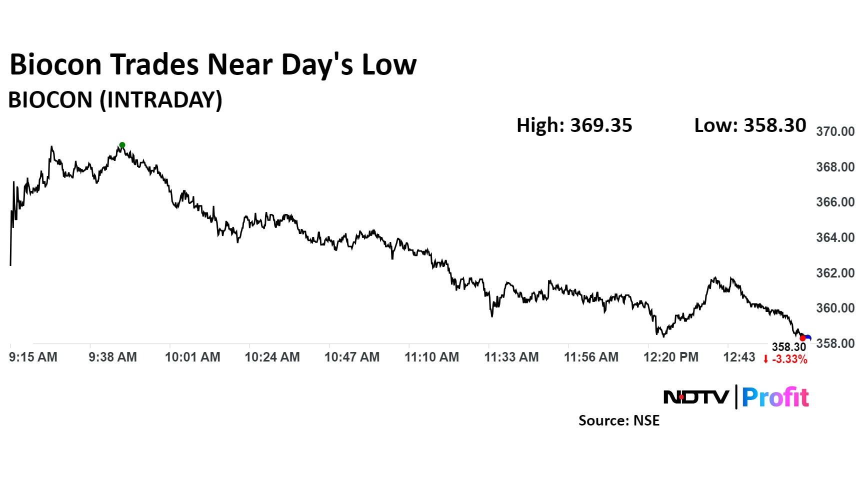 Despite this, shares of Biocon fell as much as 3.87% before paring some loss to trade 3.70% lower at Rs 356.95 per share at 1:37 p.m., compared to a 1.97% decline in the NSE Nifty 50.