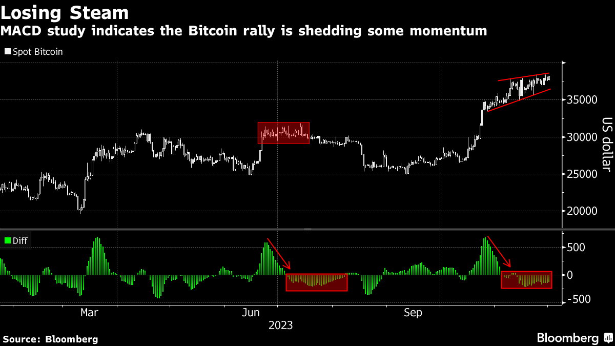 Bitcoin rose 1% to $38,121 as of 2:13 p.m. in Singapore on Friday. Smaller tokens like Ether also gained. Three charts below highlight key Bitcoin trends.