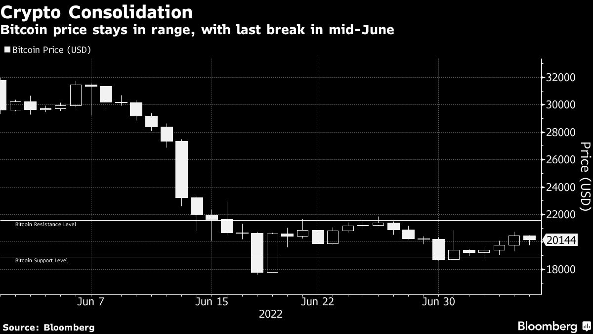 Key levels to watch for Bitcoin are $18,910, a level that prices have dipped below twice in mid-June, and $21,557, around its late-June highs, according to Craig Johnson, chief market technician at Piper Sandler Companies.