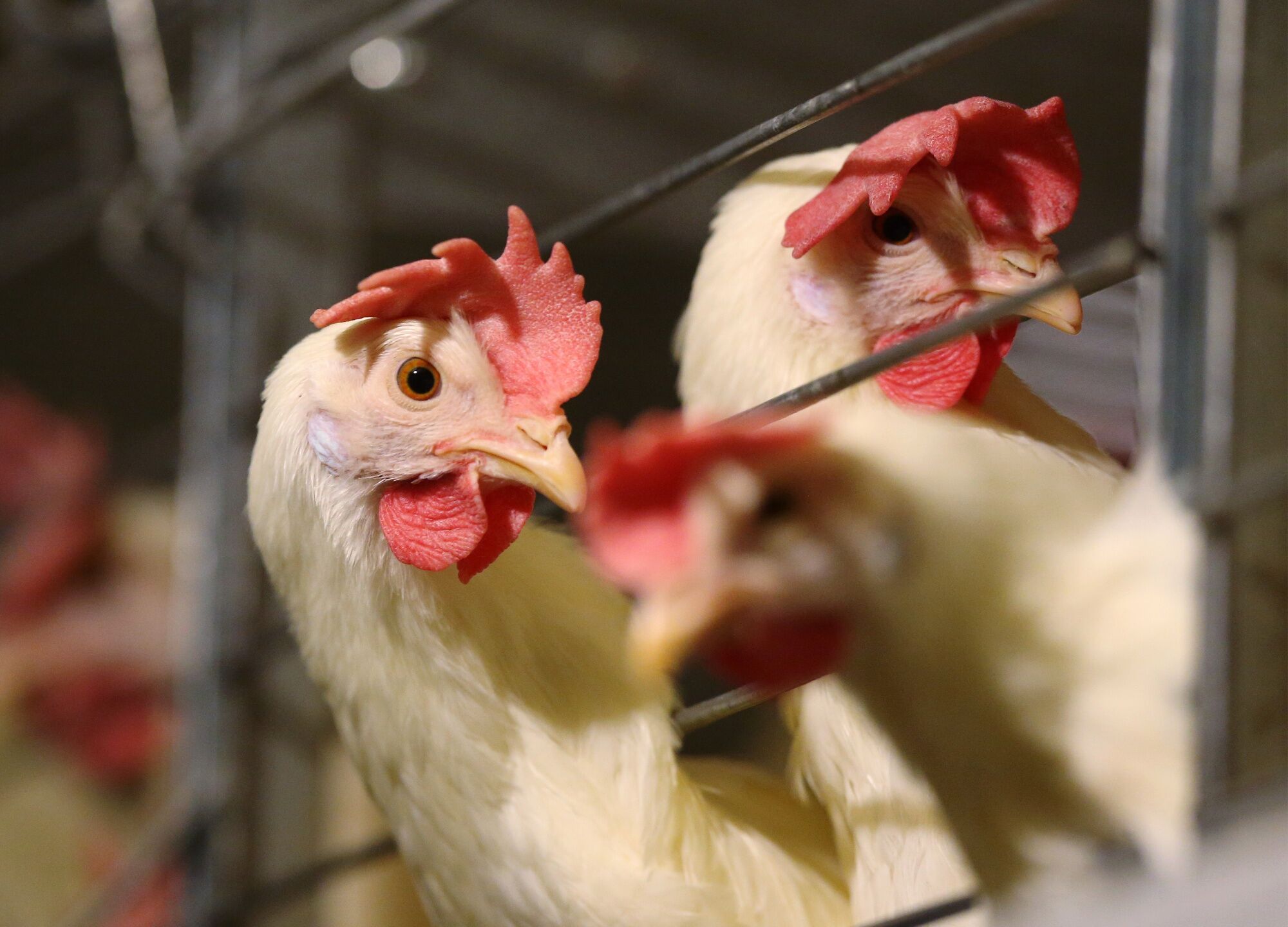Laying hens stand in enriched housing on a farm near Winnipeg, Manitoba, Canada, on Wednesday, Dec. 5, 2018. Canada's minister of agriculture announced a new poultry and egg farmers working group in November to help them adjust to new trade agreements such as the United States-Mexico-Canada Agreement (USMCA). Photographer: Shannon VanRaes/Bloomberg