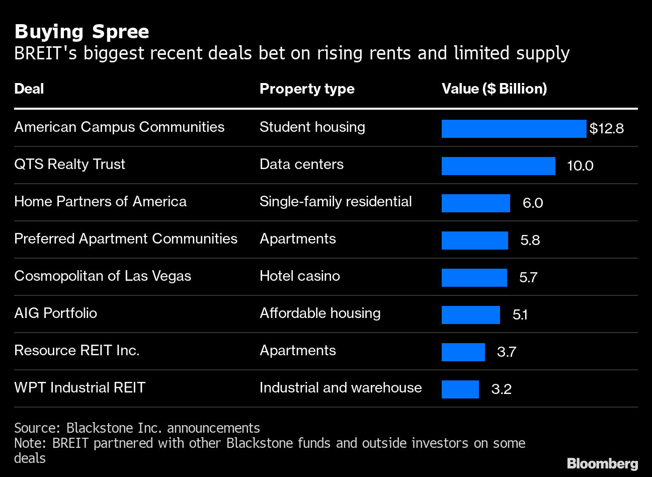 When someone invests money in BREIT, they put in more than $150,000 on average, according to a person familiar with the matter. The constant flows fueled a hunt for acquisitions that one Blackstone real estate staffer described as unrelenting.