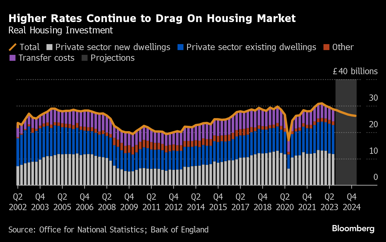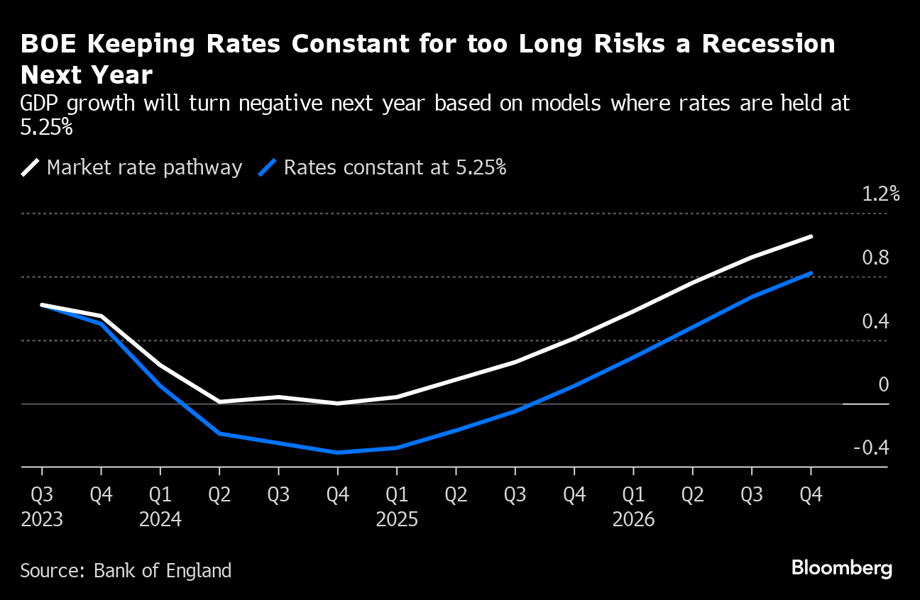After 14 consecutive rate rises from 0.1% in December 2021, the BOE has now pressed pause on its quickest tightening in three decades. Officials embedded a market expectation for one rate cut to 5% by the end of 2024 when they drew up their latest forecasts last week.