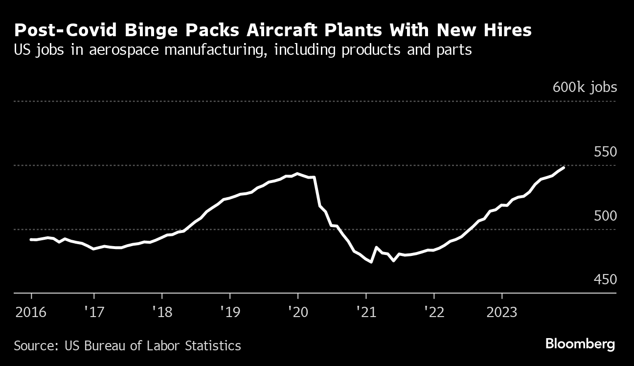(Bloomberg) -- Back in October, Boeing Co. Chief Executive Officer Dave Calhoun sought to rally employees reeling from a manufacturing setback, this time involving wrongly drilled holes in a crucial aircraft section — yet another blow to a company that once enjoyed a sterling reputation for building awesome flying machines.