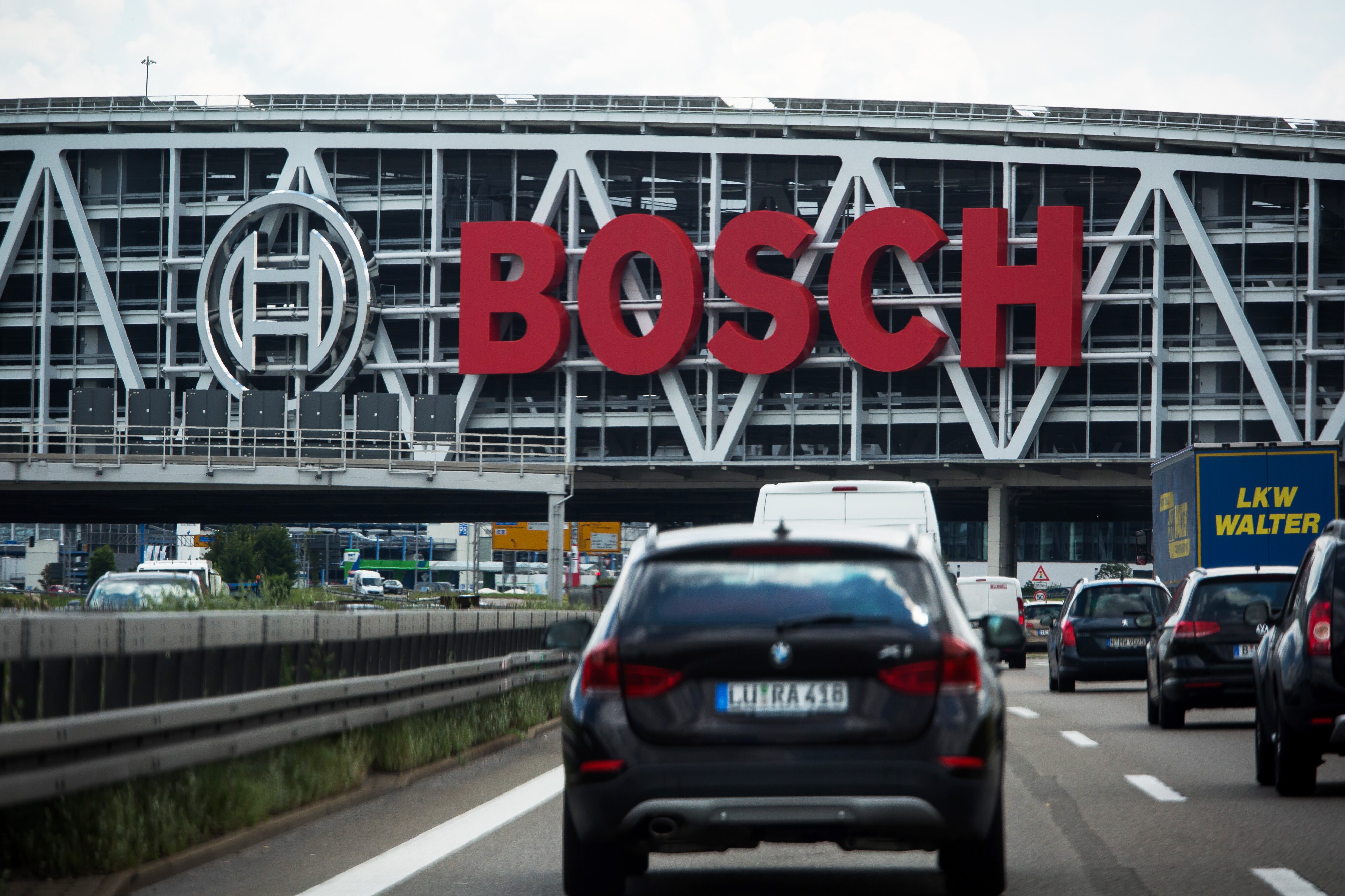 The Robert Bosch GmbH logo in Stuttgart, Germany. (Photographer: Michael Nagle/Bloomberg)