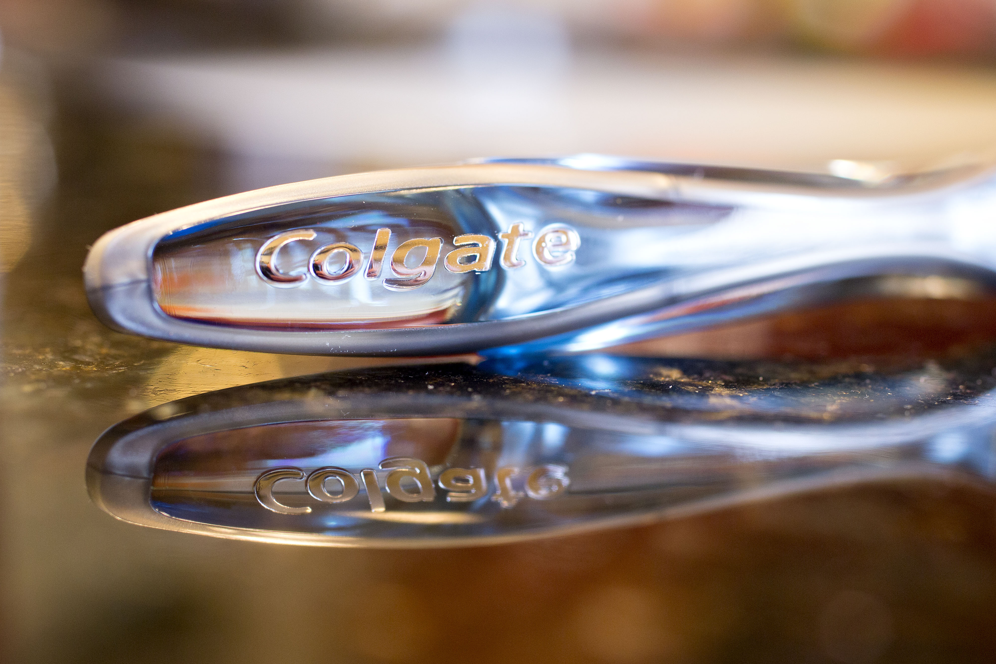A Colgate-Palmolive Co. Colgate brand toothbrush is arranged for a photograph in Tiskilwa, Illinois, U.S. (Photographer: Daniel Acker/Bloomberg)