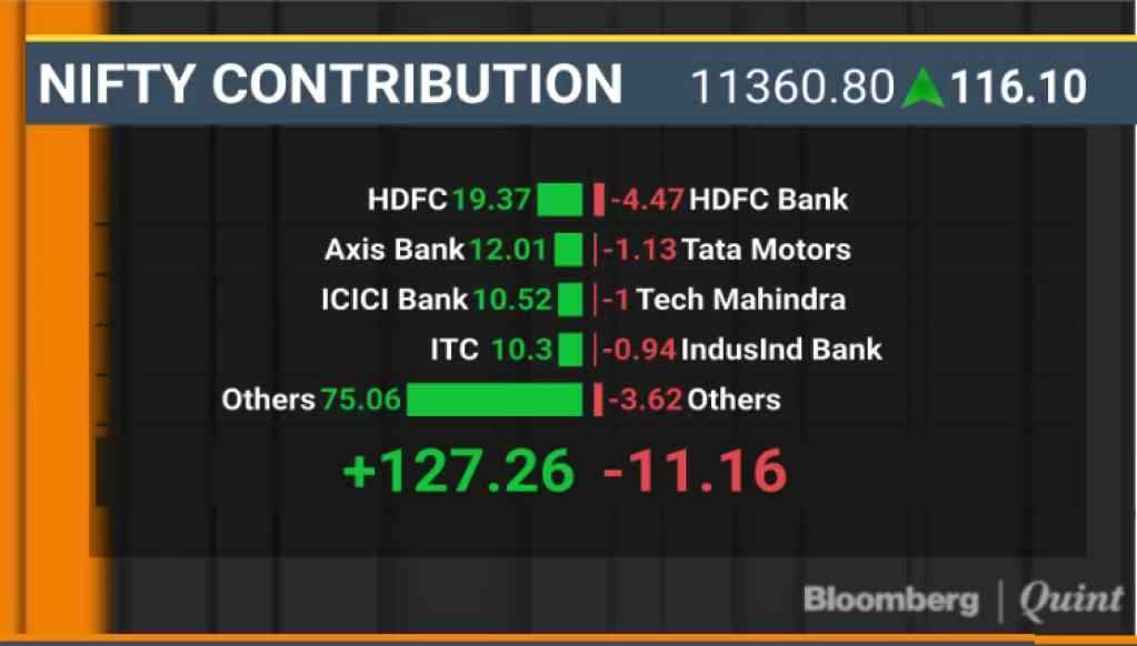 • The NSE Nifty 50 Index climbed 1.03 percent or 116 points to a record closing high of 11,361.