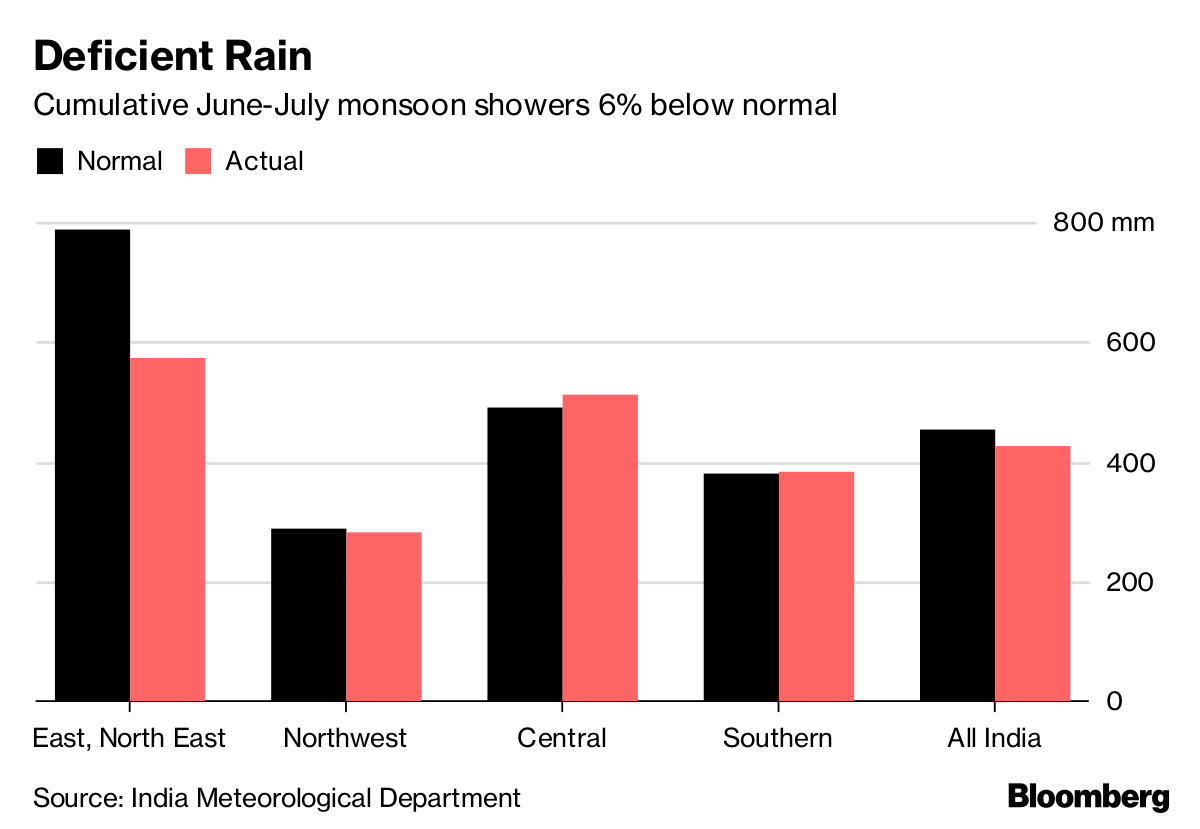 • Cumulative rainfall during August and September is forecast to be 95 percent of a 50-year average, according to the India Meteorological Department.