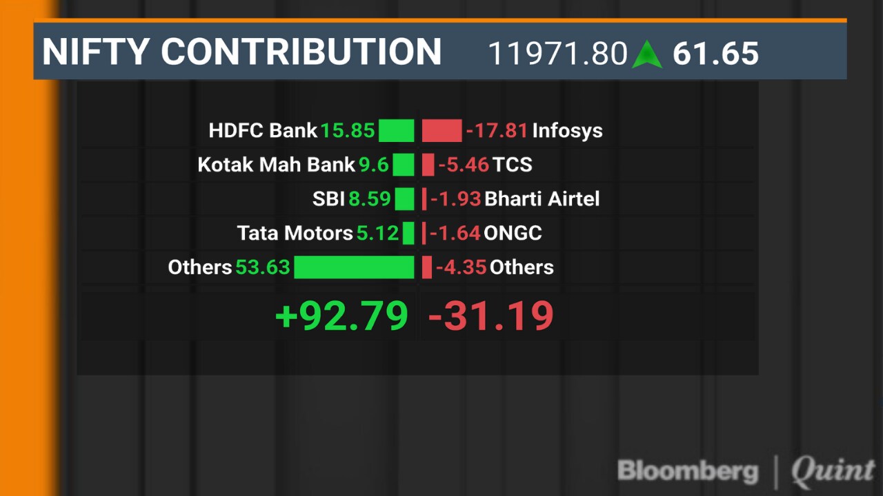 - The NSE Nifty 50 rose 0.52 percent to 11,971.80.