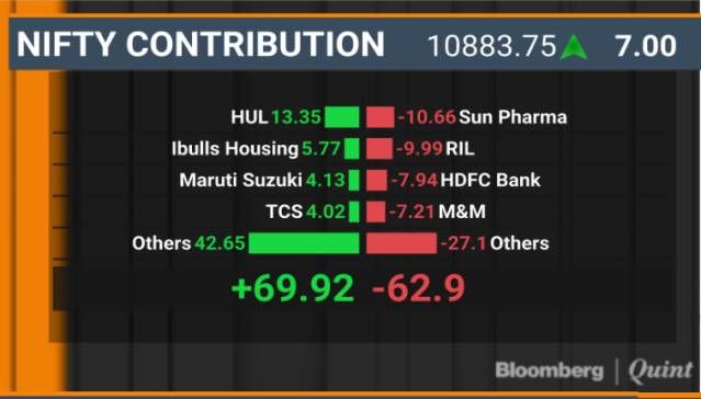 - The NSE Nifty 50 Index was little changed at 10,884.