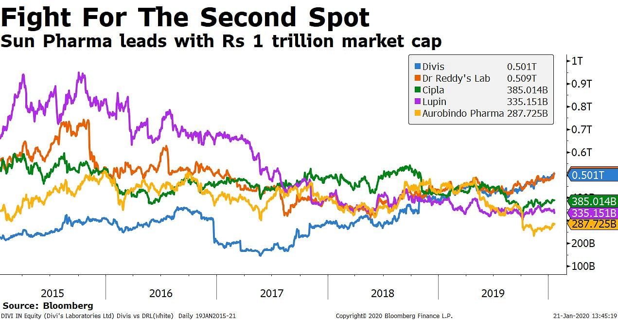 - It now vies with Dr. Reddy's Laboratories Ltd. to be India's second-largest pharma company with a market valuation of more than Rs 50,000 crore ($7 billion).